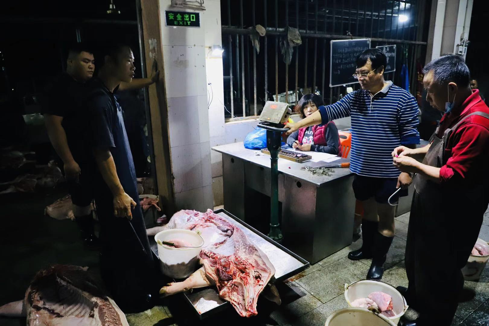 為確保兩鎮(zhèn)居民能在早市買到新鮮的生豬肉品,爵山食品公司的生產線必須趕在每天上午6點前完成電城、爵山、博賀、龍山四家食品公司的生豬屠宰,并將豬肉及時分發(fā)運輸到電城、博賀兩鎮(zhèn)的各大菜市場。